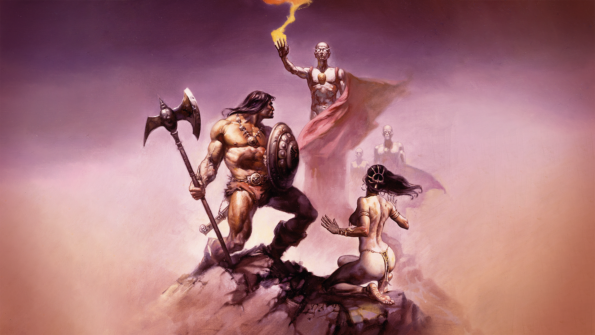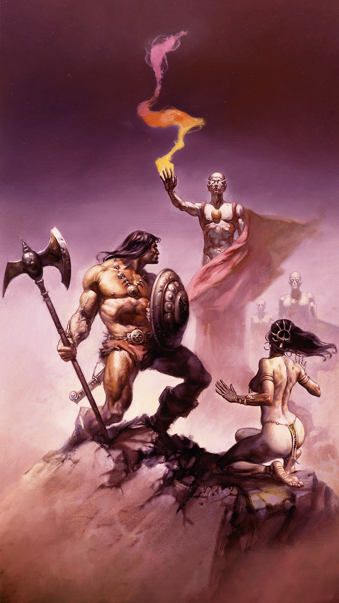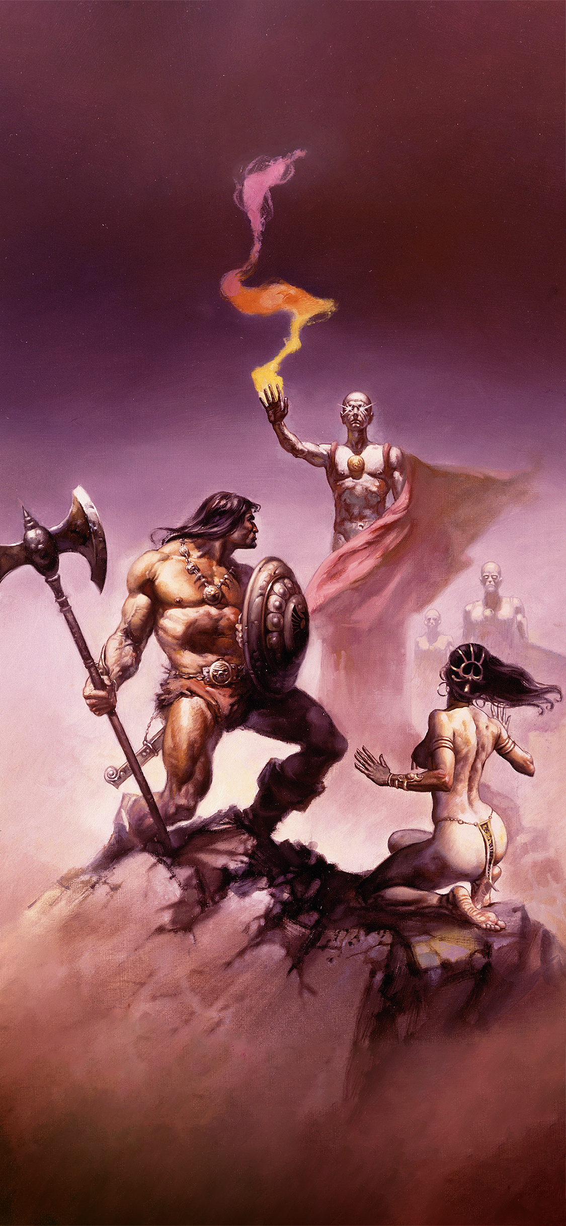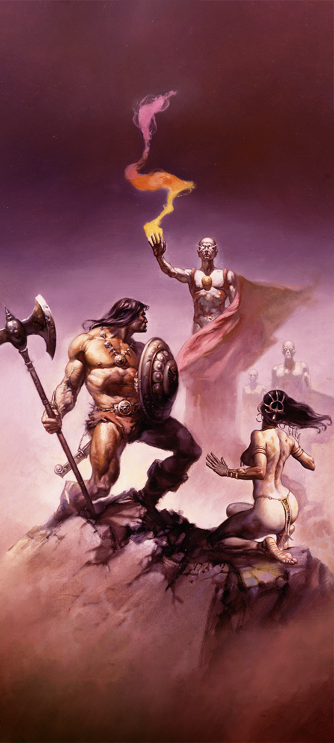 Steel meets sorcery in a storm of fire and blood. A lone warrior stands defiant before the forces of darkness, muscles carved by war, eyes burning with the fury of the gods. Behind him rise serpents, beasts, and black-cloaked doom, as the world trembles beneath the clash of sword and shadow. This is Conan, unbowed, unbroken, eternal. Artwork by Alex Horley.
